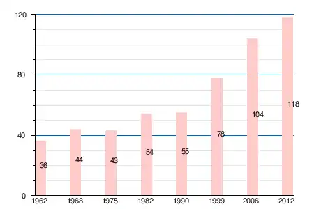 | 1962 | 1968 | 1975 | 1982 | 1990 | 1999 | 2006 | 2011 | 2012 |