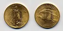 По предложению президента США Теодора Рузвельта О.Сент-Годенс в 1904 году создаёт образцы для трёх монет, отчеканенных затем государственным казначейством США.