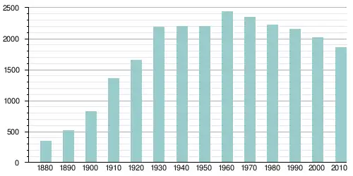 Население города по возрастному диапазону по данным переписи 2010 года распределилось следующим образом: 20,5 % — жители младше 18 лет, 3,4 % — между 18 и 21 годами, 56,6 % — от 21 до 65 лет и 19,5 % — в возрасте 65 лет и старше. Средний возраст населения — 43,9 года[2].