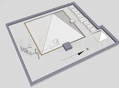 Севернее, недалеко от пирамиды, найдены остатки конструкции, которую некоторые археологи считают святилищем, связанным с праздником Сед. С восточной, западной и северной сторон вокруг пирамиды располагаются скальные погребения, принадлежавшие знатным лицам XII династии. Некоторые из них были повторно использованы во времена XVIII и XXII династий. Несколько гробниц датируемых XXII–XXV династиями, образуют отдельную группу к юго-западу от пирамиды, на границе с обрабатываемыми землями.[6][7]