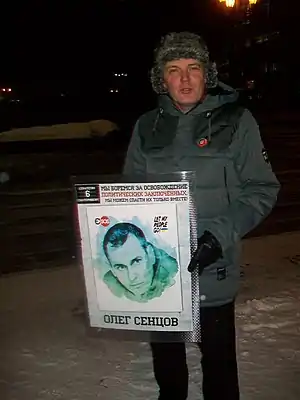 Весной 2014 года после присоединения Крыма к Российской Федерации был задержан российскими правоохранительным органами в Крыму по подозрению в терроризме. В августе 2015 года приговорён к 20 годам колонии строгого режима по обвинению в организации диверсионной группы «Правого сектора» и проведении террористических актов на территории Крыма[3]. Сенцов не признал себя виновным в инкриминируемых ему преступлениях, заявил о применявшихся к нему пытках и назвал дело политическим и сфабрикованным. Ряд международных правозащитных и кинематографических организаций выступил в его поддержку. В мае 2018 года Сенцов объявил бессрочную голодовку; это вызвало бурный отклик в СМИ и социальных сетях. В октябре того же года Сенцов прекратил голодовку, а 7 сентября 2019 года он был освобождён в рамках обмена удерживаемыми лицами между Россией и Украиной и вернулся на Украину[4].