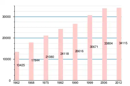 Население коммуны в 2011 году составляло — 33 624 человека[6], а в 2012 году — 34 115 человек[4].