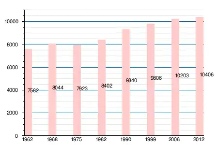 | 1962 | 1968 | 1975 | 1982 | 1990 | 1999 | 2006 | 2011 | 2012 |