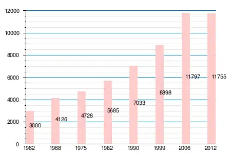 | 1962 | 1968 | 1975 | 1982 | 1990 | 1999 | 2004 | 2006 | 2009 | 2011 | 2012 |