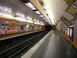 Односводчатая станция мелкого заложения, решённая по типовому парижскому проекту 1900-1952 годов — с двумя боковыми платформами. Стены и свод выложены керамической плиткой белого цвета. Над каждой из платформ закреплены по ряду люминесцентных светильников прямоугольного типа, охрового цвета.