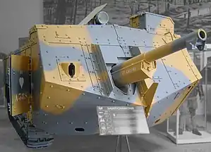 Имел плоскую крышу; был вооружён одной 75 мм пушкой, четырьмя пулемётами. Двигатель мощностью 90 л. с. Экипаж — 8 человек. Бронирование — 17 мм.