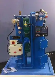 СЛВ состоит из двух ступеней. Фильтр первой ступени удаляет физические примеси и способствует некоторому тонкому разделению. Фильтр второй ступени использует коалесцирующие вставки для достижения окончательного удаления нефти. Коалесценция - это разрушение поверхностного натяжения между каплями нефти в смеси вода / нефть, которое заставляет их соединяться и увеличиваться в размере. Нефтяные остатки из нефтесборника сливается автоматически или вручную. На большинстве современных судов нефтяные остатки из нефтесборника сливаются автоматически.