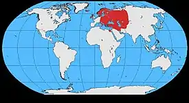 Восточная Европа, Скандинавия, Малая Азия, территория России с запада до Енисея. Оседло-кочующий вид, полностью исчезает в зимний период только с северной периферии ареала. Один из наиболее синантропных представителей врановых, типичный обитатель городов. Существуют как полностью оседлые городские популяции, так и популяции, гнездящиеся в естественных ландшафтах, а также переходные. Многие особи, обитающие в лесах, сельской местности, проводят зиму в пригородах и городах.