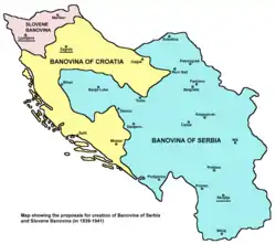 Вопрос о создании Хорватской бановины в 1939—40 годах был согласован между премьер-министром Драгишем Цветковичем и хорватским лидером Владко Мачеком (из Хорватской крестьянской партии) в марте—августе 1939 года и урегулирован на основе соглашения 26 августа[1]. Хорватия теперь стала единственной бановиной, созданной по национальному принципу, названной в честь большинства населения (за пределами которой осталось лишь меньшинство), и таким образом, близкой к национальному государству[2]. Соглашение получило мало поддержки среди сербских политических партий, а Сербская православная церковь и югославская армия выступили против него[3]. Создане Хорватской бановины открыло вопрос о политическом статусе сербского народа в Королевстве Югославия («сербский вопрос»). Некоторые сербские интеллектуалы (особенно члены Сербского культурного клуба) и политики (включая отдельных членов югославского правительства), предложили план создания Сербской бановины, которая бы включила территории существовавших Врбаской, Дринской, Дунайской, Моравской, Зетской и Вардарской бановин[4]. Хорватская бановина включала в себя значительное количество сербского населения, в то время, как в Сербскую бановину должно было войти значительоне количество несербского и неславянского населения. В 1940 году эти планы были подтверждены в февральском номере журнала Glas, издавемого Матицей сербской[5]. Было указано, что кроме Хорватской бановины, только Сербская и предполагаемая Словенская бановины имеют прецедент и право на формирование и существование, как государства трёх этнических групп, образовавших Югославию, то есть Государство словенцев, хорватов и сербов и Королевство сербов, хорватов и словенцев[5]. Процесс создания Сербской бановины должен был похож на процесс в Хорватии[4].