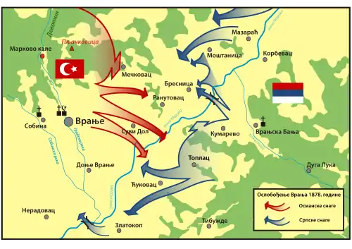 Сербия, как союзник Российской империи в Русско-турецкой войне 1877—1878 годов, вела успешные боевые действия, в ходе которых сербская армия за несколько недель достигла Косова, Чукарки и Кюстендила. Благодаря этим успехам Сербия получила долгожданную независимость, а также районы Вране, Прокупле, Ниш и Пирот.