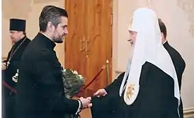 ![]() Ректор Славяно-греко-латинской академии Сергий (Храмешин) и патриарх Кирилл | |