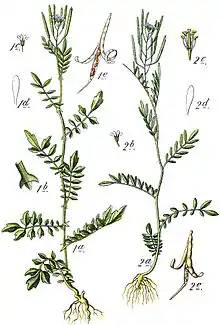 Сердечник мелкоцветковый (под цифрой 2). Ботаническая иллюстрация Якоба Штурма из книги Deutschlands Flora in Abbildungen, 1796