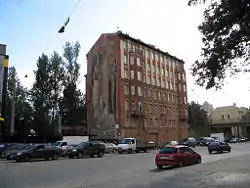 На доме 2г (административное здание трамвайного парка № 5, архитектор А. А. Ламагин, 1913—1915 годы) также установлена мемориальная доска, гласящая: «15 апреля 1942 г. после 4-месячного перерыва благодаря героическому труду работников парка возобновилось трамвайное движение по улицам блокадного Ленинграда».