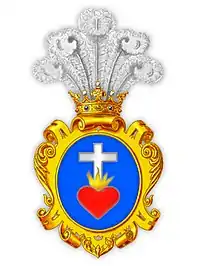 Щит: в голубом поле пламенеющее сердце, увенчанное крестом. Нашлемник: пять страусовых перьев.