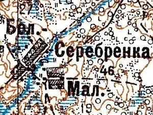 Согласно топографической карте 1926 года деревня называлась Серебренка и состояла из двух частей: Большая Серебренка насчитывала 27 крестьянских дворов, Малая Серебренка — 19.