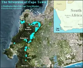 Столовая гора это, пожалуй, единственное место, где серебряные деревья растут естественным образом, поскольку популяции возле Стелленбоша и Паарла (хотя и предположительно естественные) могли быть завезены со Столовой горы.