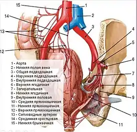 ![]() Срединная крестцовая артерия и её ветви | |