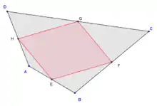 В силу теоремы Вариньона серединный четырёхугольник всегда является параллелограммом, который называется вариньоновым. Если четырёхугольник является простым, то площадь параллелограмма равна половине площади исходного четырёхугольника. Периметр параллелограмма равен сумме диагоналей исходного четырёхугольника.