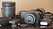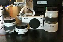 Nikon 1 (Серия) - беззеркальные цифровые камеры со сменной оптикой, использующие байонет Nikon 1, представленные 21 сентября 2011 года.[1] .