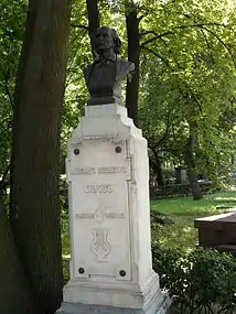 Слева направо: А.Н. Серов на смертном одре, Могила композитора А. Серова на Некрополе мастеров искусств Александро-Невской лавры в Санкт-Петербурге | ||||||||||