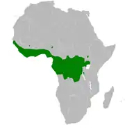Вид распространён в Западной и Центральной Африке от Сенегала до Уганды. Встречается в лесистой местности[2].