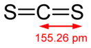 Чистый сероуглерод представляет собой бесцветную жидкость с приятным «эфирным» запахом. Технический продукт, полученный сульфидированием угля, имеет неприятный «редечный» запах. Молекула CS2 линейна, длина связи С—S = 0,15529 нм; энергия диссоциации 1149 кДж/моль.