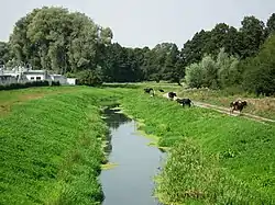 Река начинается около Бельска[2]. Затем течёт в северном направлении по открытой местности через населённые пункты Смилово, Медусы-Сыпнево, Слюпя, Петрыкозы, затем меняет направление течения на северо-западное[2]. Протекает через Схабаево, Громбец, Борково-Косьцельне[2]. В низовьях протекает через Серпц[2][5]. В верховьях канализирована[2]. Расход воды в устье — 0,7 м³/с[4].