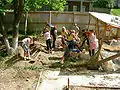 Ученики 5—7-х классов МОУ СОШ № 16 г. Серпухова на раскопках фундамента алтарной части Никольской церкви Серпуховского кремля