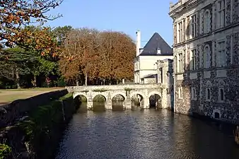 Здания строились в основном из коричневого сланцевого камня. Из светлого туфа изготавливали декоративные элементы фасада. В целом комплекс соответствует архитектурному стилю эпохи Франциска I.