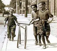 В начале XIX века путешествующие по Европе встречали в разных её городах детей, играющих с обручем; обычно играли мальчики около 12 лет.