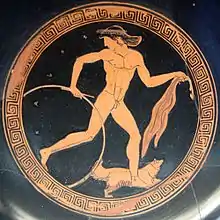 Также обруч имел символическое значение в греческих мифах и культуре. Бронзовый обруч был одним из игрушек младенца Диониса, катание обруча — это атрибут Ганимед, часто изображается на греческих вазах, картинах, мозаиках.