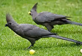 Этих птиц можно легко определить по их длинным хвостовым перьям, хохолку, а также по серому оперению. Длина тела взрослых птиц составляет до 48 см. Птицы часто встречаются в небольших стаях и очень крикливы.