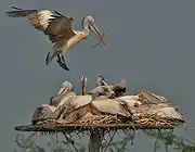 Серые пеликаны гнездятся вместе с аистами