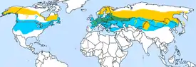![]() Оседлые популяции Перелётные популяции Встречается только вне сезона размножения |