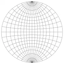 Сетку Вульфа обычно строят с шагом координат в 2°.