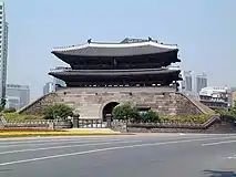 Изначально город был полностью окружен крепостной стеной высотой до семи метров для защиты населения от диких животных, разбойников и вражеских армий. Затем город разросся за стены и, хотя они сейчас не существуют (кроме небольшого участка к северу от центра города), крепостные ворота существуют по сей день, самые известные из них: Намдэмун и Тондэмун. Во времена Чосон ворота открывались и закрывались каждый день под звуки больших колоколов.