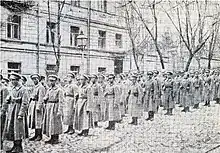 Летом 1917 года в Киеве был создан Галицко-Буковинский комитет, который в начале ноября 1917 года принял решение сформировать из пленных галичан воинскую часть для вооружённой защиты Украинской народной республики. 12 ноября было получено письменное согласие Генерального секретариата военных дел УНР на создание воинской части. 13 ноября было выпущено воззвание «Временной главной рады галицких, буковинских и закарпатских украинцев» с призывом вступать в ряды Сечевых стрельцов за подписью И. Лизанковского, Е. Коновальца, Р. Дашкевича, Ф. Черника, И. Чмолы, Г. Лысенко, М. Низкоклона[1].