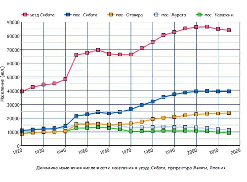 Ниже показана динамика изменения численности населения в уезде Сибата.[1][2]