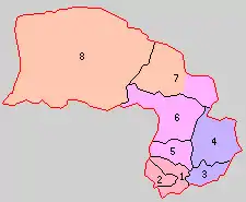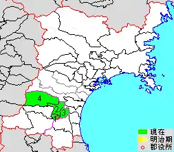 Зелёным цветом изображён уезд Сибата в преф. Мияги 1. Огавара, 2. Мурата, 3. Сибата, 4. Кавасаки | |