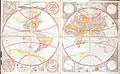 Карта мира труда Сиба Кокана опубликована в 1792 году в двух рукописных листах, показывает в окружающих диаграммах рисунки Коперника с Землей, Солнцем и Луной.