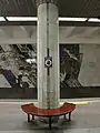 Станционный потолок выполнен в виде изморози — светлой россыпи разнообразных свисающих кристаллов. Мраморные же колонны, выполненные призматическими — словно ледяные глыбы. А вокруг — мерцающие грани сосулек и льдинок царства Снежной королевы. Этим оформлением авторы проекта станции А. В. Бондаренко и В. М. Голямов сделали попытку выразить характер Сибири[8].