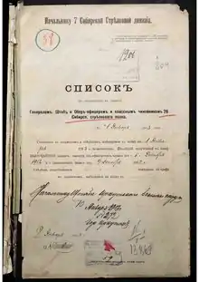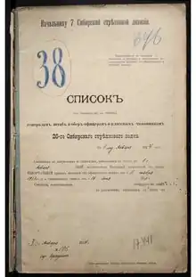 - Список (по старшинству в чинах) генералам, штаб и обер-офицерам и классным чиновникам 26-го Сибирского стрелкового полка