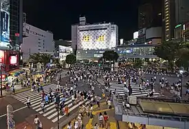 ![]() Сибуйский диагональный пешеходный переход в районе Сибуя ночью | |||||