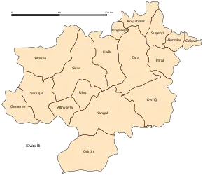 Ил Сивас делится на 17 районов: