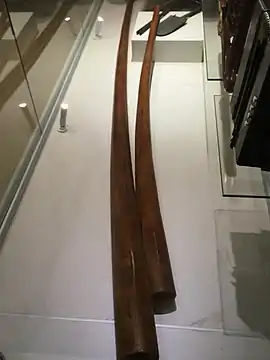 - Абыкь — абхазский народный язычковый духовой музыкальный инструмент. Абхазская труба, её называют язычковая свирель типа рожка. Благодаря его фанфарным звукам, которые разносятся далеко, при помощи него объявляли военную тревогу. Игрой на инструменте начали созыв людей на праздник[3].