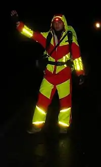 В такие цвета окрашена сигнальная одежда, используемая при работе в местах повышенной опасности: на железных и автодорогах, в строительстве и т. д., а также сотрудниками специальных служб, правоохранительных органов, спасателями и др. Кроме того, сигнальную одежду носят охотники для предотвращения несчастных случаев на охоте.