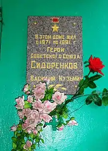 - Имя Василия Кузьмича Сидоренкова значится на памятной доске Героев Советского Союза — уроженцев Орла (Бульвар Победы, д. 1)[10].