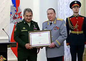 20 февраля 2013 года присвоено воинское звание генерал-полковника[7].