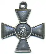 - Знак отличия Военного ордена — Георгиевский крест под № 88059 — за участие в боевых действиях на Кавказе (1851 год)