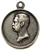 - Золотая медаль «За усердие» на ленте ордена Св. Анны.